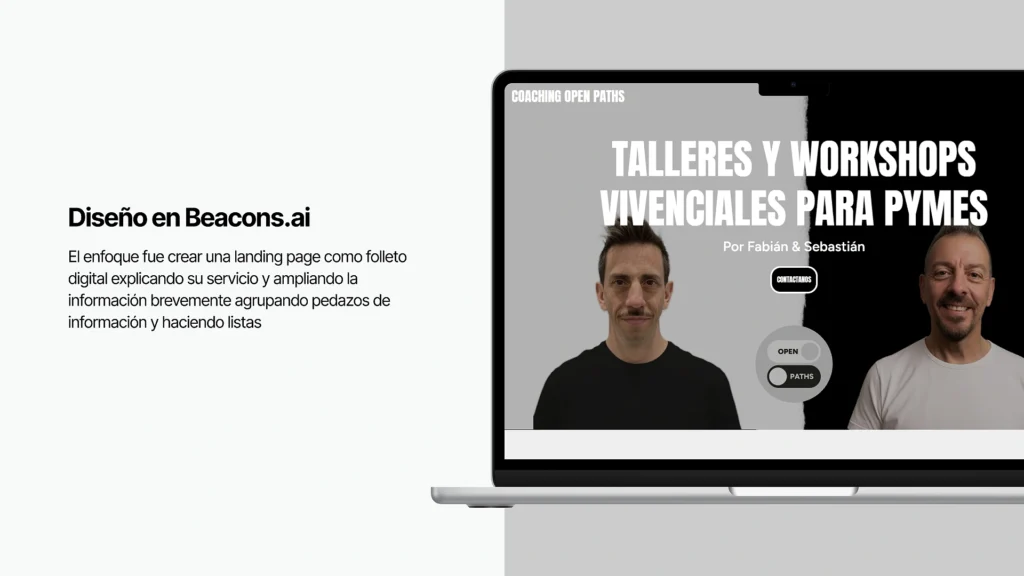 Hace poco trabajé con Fabián y Seba de @coachingopenpaths. Ellos son actores e improvisadores con un talento increíble, pero tenían un desafío comercial: querían empezar a vender coaching corporativo para PyMEs. El problema era salir a vender servicios serios a empresas usando una base artística, pero generando confianza inmediata en redes con su comunicación visual