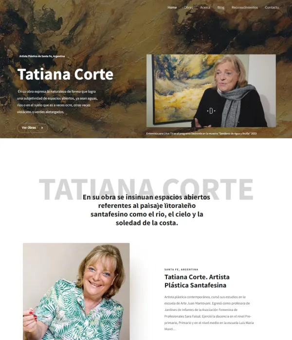 Tatiana Corte es una pintora abstracta Argentina. Tiene una notable trayectoria. Ella carecía de presencia digital y no estaba familiarizada con los smartphones. En consecuencia, realicé una investigación exhaustiva en su estudio, catalogando meticulosamente sus obras de arte, biografía, críticas y elogios.Mi enfoque estuvo profundamente arraigado en la comprensión conceptual, la redacción de ideas a partir de folletos antiguos, reseñas de exposiciones y críticas.Aunque el trabajo principal fue crear su sitio web, amplié mis servicios a toda su identidad visual. El diseño de folletos, tarjetas personales, currículo y lettering para portadas de blog.